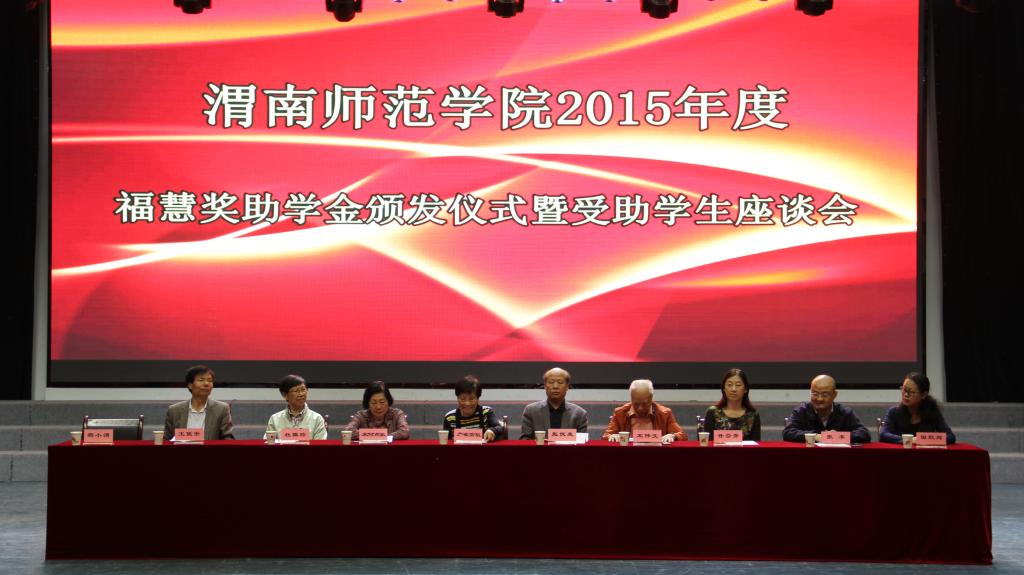 4月25日,香港福慧慈善基金会奖助学金颁发仪式暨受助学生座谈会在bat365官网演艺厅举行。福慧慈善基金会主席严崔常敏,基金会董事宋伟文、宋何燕敏、杜佩玲,陕西省委统战部港澳海外联络处处长张丰,渭南市委台办主任许芬芳及bat365官网党委副书记赵伏友,党委委员、组织部部长杨小渭,学工部相关负责人出席会议。各二级学院分管学生工作领导、学工办主任、主管资助工作的辅导员和300余名学生代表参加了颁奖仪式。会议由党委委员、组织部部长杨小渭主持。