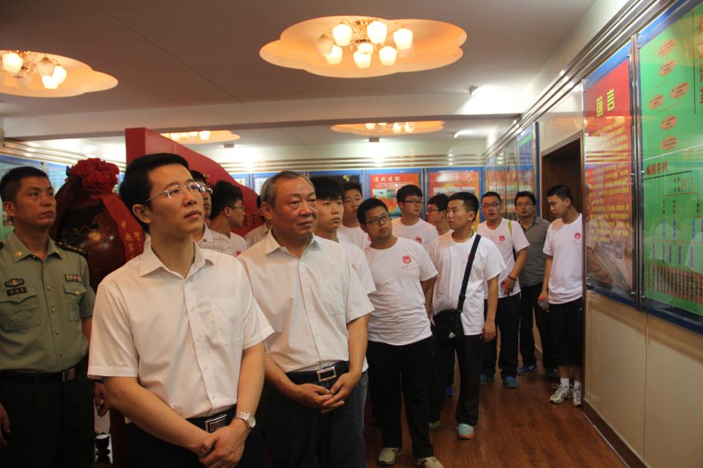 学校党委书记张金安、团省委副书记单舒平及学生代表参观英模部队荣誉室