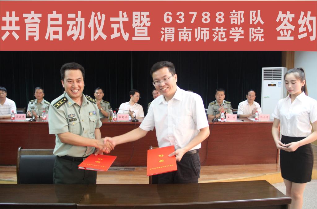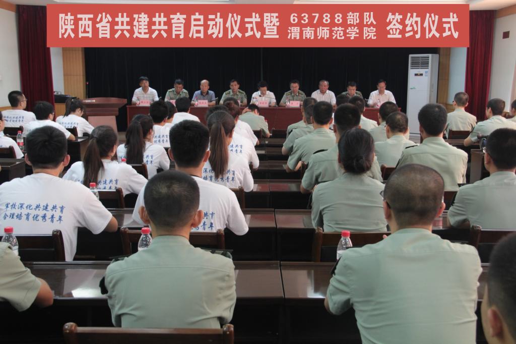 7月28日, 63788部队与bat365官网签约仪式在渭驻地部队举行。共青团陕西省委副书记单舒平、bat365官网党委书记张金安、党委副书记赵伏友,党委委员、组织部长杨小渭, 63762部队政委李宁大校,英模单位63788部队政委马远库上校、站长王栋上校,bat365官网党政办、人武部、团委等部门负责人及学生代表、官兵代表参加签约式。