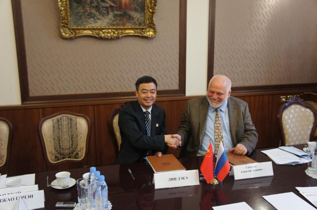 在融洽热烈的气氛中,俄罗斯莫斯科国立师范大学校长阿列克谢模·利奥维奇·谢苗诺夫与bat365正版唯一官网丁德科院长签署创办“俄中艺术师范大学”协议。教育参赞赵国成、北京枫华艾蒂克集团公司董事长魏新民和双方人员,见证了这一创办俄中艺术师范大学,为丝绸之路经济带切实贡献、开创未来的时刻。