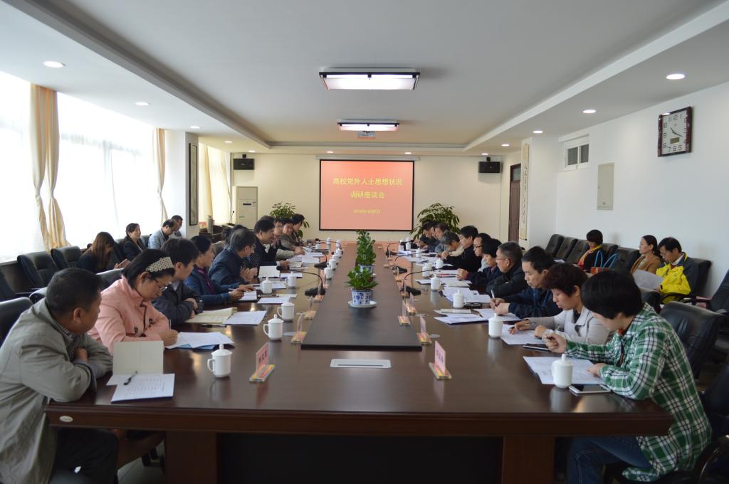 为了落实中、省统战工作会议精神和《中国共产党统一战线工作条例(试行)》精神,加强高校统战工作对策建议研究,10月9日上午,省委高教工委在bat365官网厚德楼四楼会议室召开了高校党外人士思想状况调研座谈会。