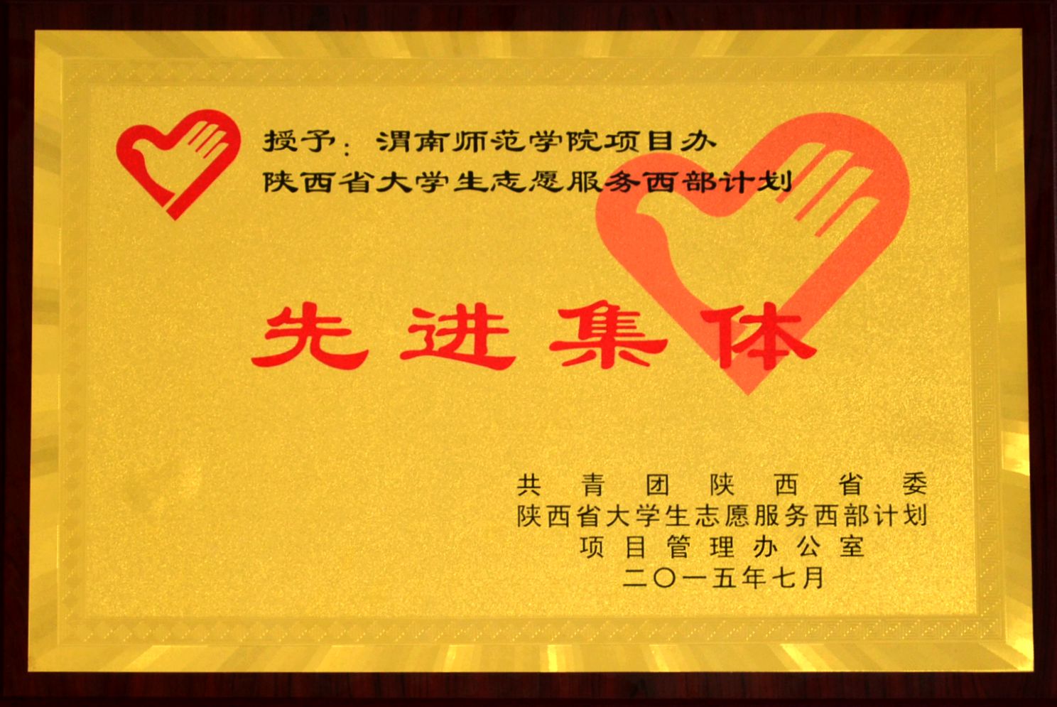 近日,从共青团陕西省委获悉,bat365官网被共青团陕西省委授予“2014—2015年度陕西省大学生志愿服务西部计划先进集体”称号。该奖是bat365官网再一次取得的西部计划荣誉奖,是校团委及大学生志愿者践行西部计划的优秀劳动成果。
