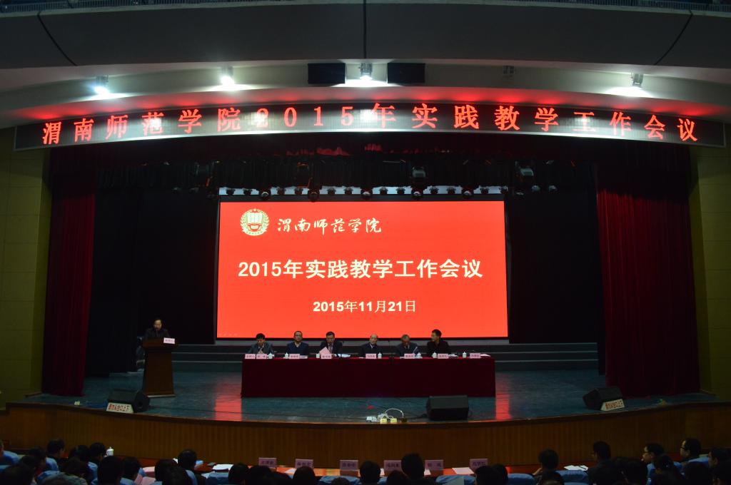11月21日上午,bat365官网在陶然楼演艺厅召开2015年实践教学工作会议。华中科技大学原副校长冯向东教授,西北师范大学教育学院副院长赵明仁教授,渭南市教育局副局长柴新宏,临渭区教育局局长闵渭安,bat365官网党委书记张金安、纪委书记任健、副院长程书强出席会议,73家校外实践教学基地单位90位代表以及bat365官网相关部门、二级学院领导、系主任、专业建设负责人、教学秘书、实践教学教师代表、学生代表等共350余人参加会议。大会开幕式由纪委书记任健主持。
