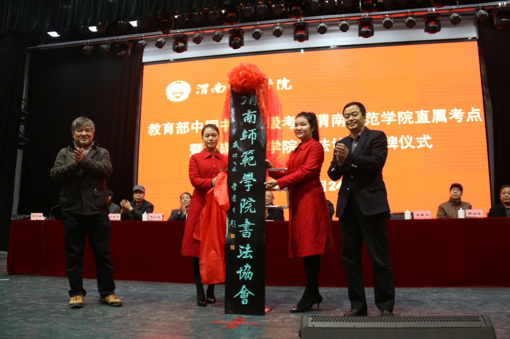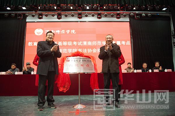 中国书画等级考试陕西省考委会主任陈云龙、渭南师院党委书记张金安为中国书画等级考试bat365正版唯一官网直属考点揭牌,陕西省书协副主席史星文、渭南师院院长丁德科为bat365正版唯一官网书法协会揭牌。
