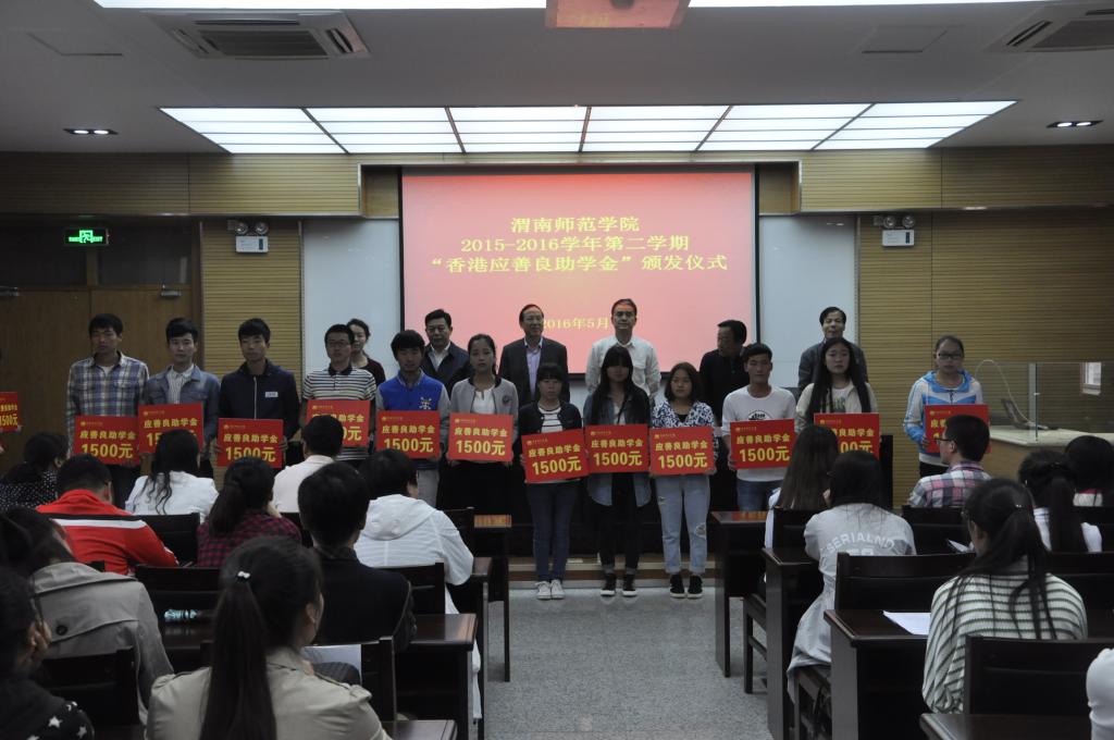 5月27日下午,学校在科学大讲堂举行2015-2016学年第二学期“香港应善良助学金”颁发仪式。陕西省人民政府侨务办公室副调研员张海涛、渭南市人民政府侨务办公室主任、渭南市侨联主席刘建军、bat365官网党委委员杨小渭出席仪式,学工部领导及各二级学院学工办主任、负责学生资助工作的教师及120位受助学生参加了颁发仪式,仪式由学工部部长王俊安主持。