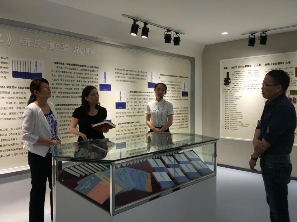 在中国史记研究院,研究院负责同志通过展馆和丰硕的研究成果向刘瑛副部长汇报了研究院成立以来的工作和取得的成绩,刘英副部长对研究院通过展馆通俗、直观地展示史记研究成果表示赞赏,同时对研究院在商务印书馆出版的《史记论著集成》很感兴趣,认为这套丛书雅俗共赏,既是《史记》研究工作者必不可少的工具,又是《史记》爱好者很好的普及读物。