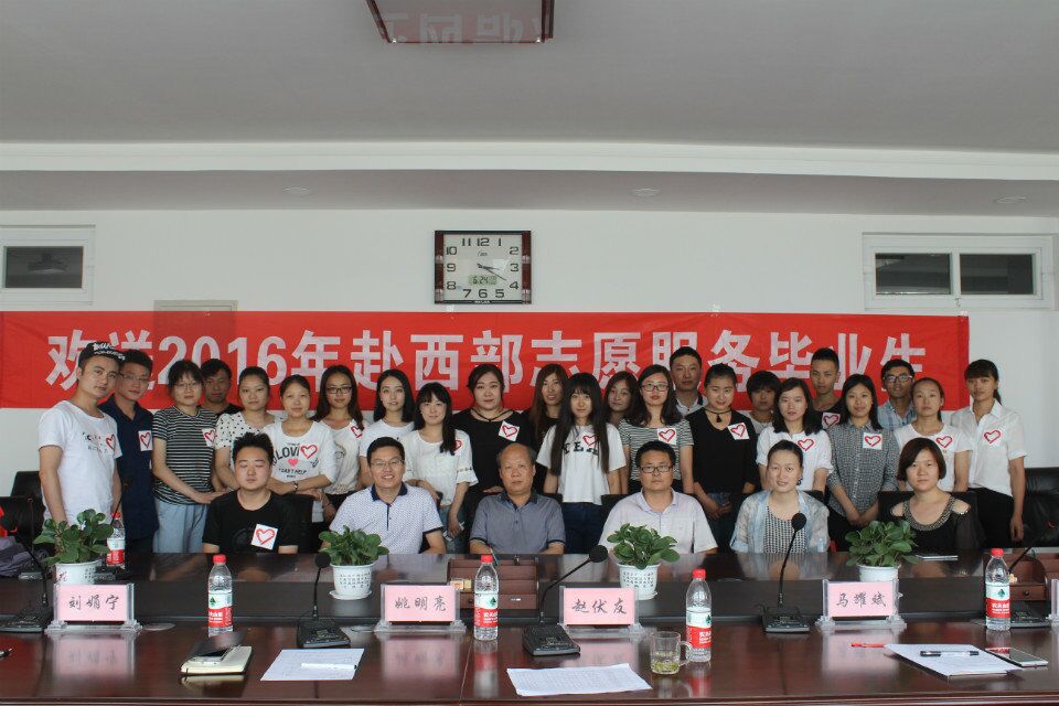 据了解,今年共有21名毕业生赴西部志愿服务,其中西藏2人,新疆3人,宁夏3人,陕西13人。西部计划”鼓励青年知识分子到实践中去、到基层和艰苦地区去经受磨练,健康成长,是我们党和政府的一贯方针。动员大学生到西部去,到祖国和人民最需要的地方去建功立业,对于促进西部贫困地区教育、卫生、农技、扶贫等社会事业的发展,拓展大学生的就业、创业渠道,培养和造就一大批既有现代科学文化知识又有基层工作经验和强烈社会责任感的优秀青年人才,弘扬“奉献、友爱、互助、进步”的志愿精神,推动经济社会持续快速健康发展,具有非常重要的作用和意义。(通讯员 王若萌)