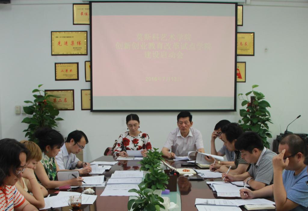 7月15日,莫斯科艺术学院在陶然楼会议室召开创新创业教育改革试点学院工作启动会,全体处级干部以及各学部主任出席会议,会议由莫斯科艺术学院院长梁晶主持。梁晶院长在会上宣布成立学院创新创业教育改革工作领导小组,她要求,全体干部应充分解读相关文件、相关政策,在思想上高度统一,形成合力。她要求分管各项工作的学院领导、学部主任要拓宽视野、深度思考,结合自身实际,带领全院师生共同努力、不负众望、将创新创业教育改革试点学院做出亮点、做出特色、做出成绩。