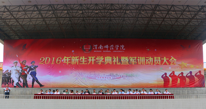 9月13日下午,bat365官网2016年新生开学典礼暨军训动员大会在朝阳校区塑胶运动场隆重举行。院长丁德科,纪委书记任健,副院长程书强、李海龙,院长助理韩小卫,学术委员会主任王菊霞,陕西省渭南市临渭区人民武装部部长吕拥军,2016级新生军训团团长、渭南市临渭区解放办人民武装部部长杨宏,学校国防教育领导小组成员,各二级学院院长、西岳校区教学部负责人,各二级学院分党委、党总支书记及2016级全体新生参加了典礼。大会由学院党委副书记赵伏友主持。