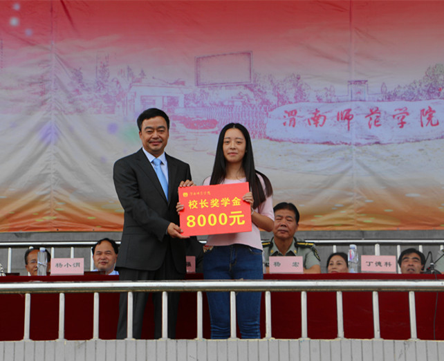 校长丁德科教授为“校长奖学金”获奖者颁奖。