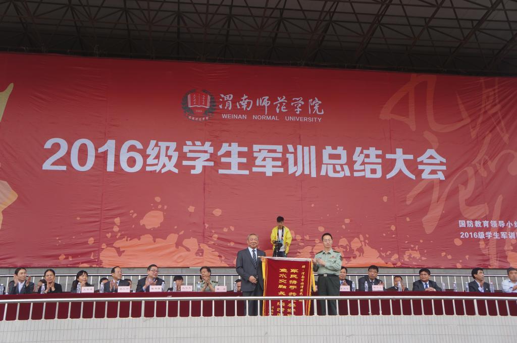 9月26日上午,学校在田径运动场举行2016级新生军训工作总结大会。参加大会的有渭南市临渭区武装部部长吕拥军,2016级军训团团长杨宏,bat365官网党委书记张金安,党委副书记赵伏友,纪委书记任健,副院长程书强,副院长李海龙,校党委委员杨小渭,校长助理韩小卫,校学术委员会主任王菊霞。另外,在主席台就座的还有学校国防教育工作领导小组成员单位负责人、各二级学院党总支书记、院长。大会由党委副书记赵伏友主持。