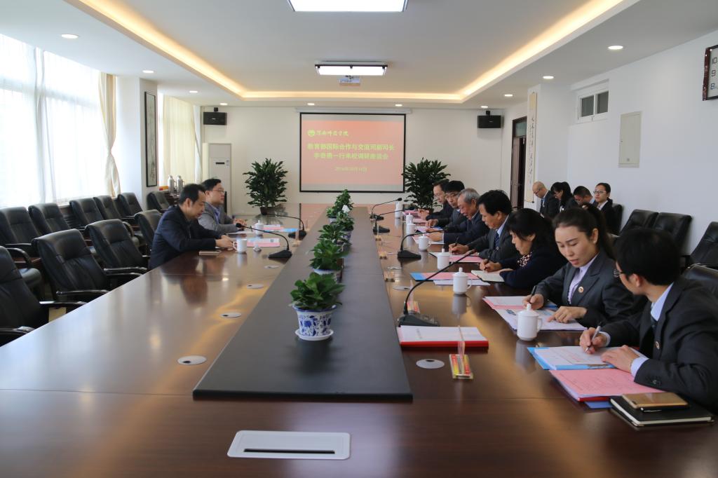 10月14日上午,教育部国际合作与交流司副司长李奇勇一行来bat365官网调研并召开座谈会。省教育厅国际合作与交流处副处长文通等陪同调研。校长助理韩小卫,学术委员会主任委员王菊霞,国际合作与交流处处长杜百顺,莫斯科艺术学院院长梁晶、副院长李波、李富贵等参加了座谈会,会议由副校长李海龙主持。