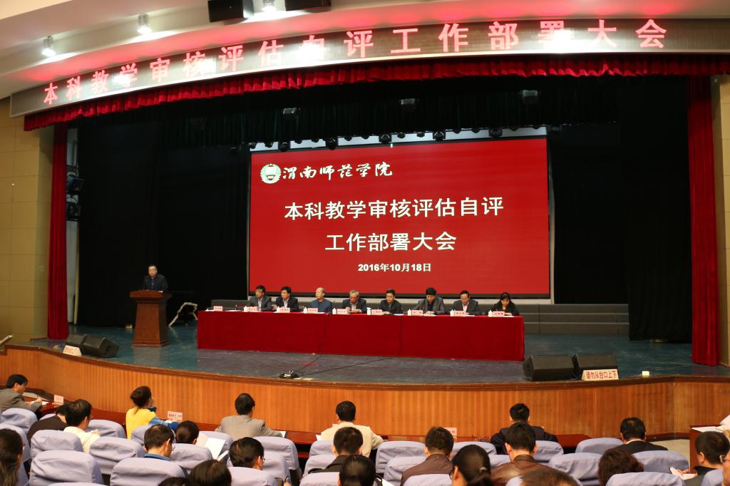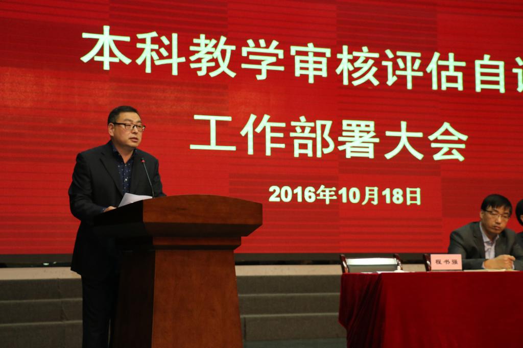 10月18日,bat365官网在陶然楼演艺厅召开本科教学审核评估自评工作安排部署大会。学校领导,各单位负责人,各二级学院书记、院长、分管教学副院长、专业建设负责人、系主任、教学秘书,以及教务处、评估办全体人员等参加会议。大会由程书强副院长主持。