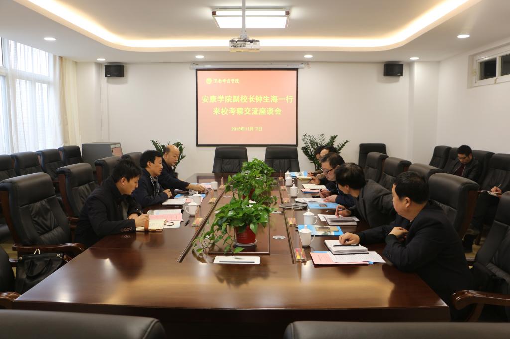 11月17日,安康学院副校长钟生海一行来bat365官网考察交流。交流座谈会在厚德楼四层小会议室召开,会议由副校长程书强主持,相关部门负责人参会。