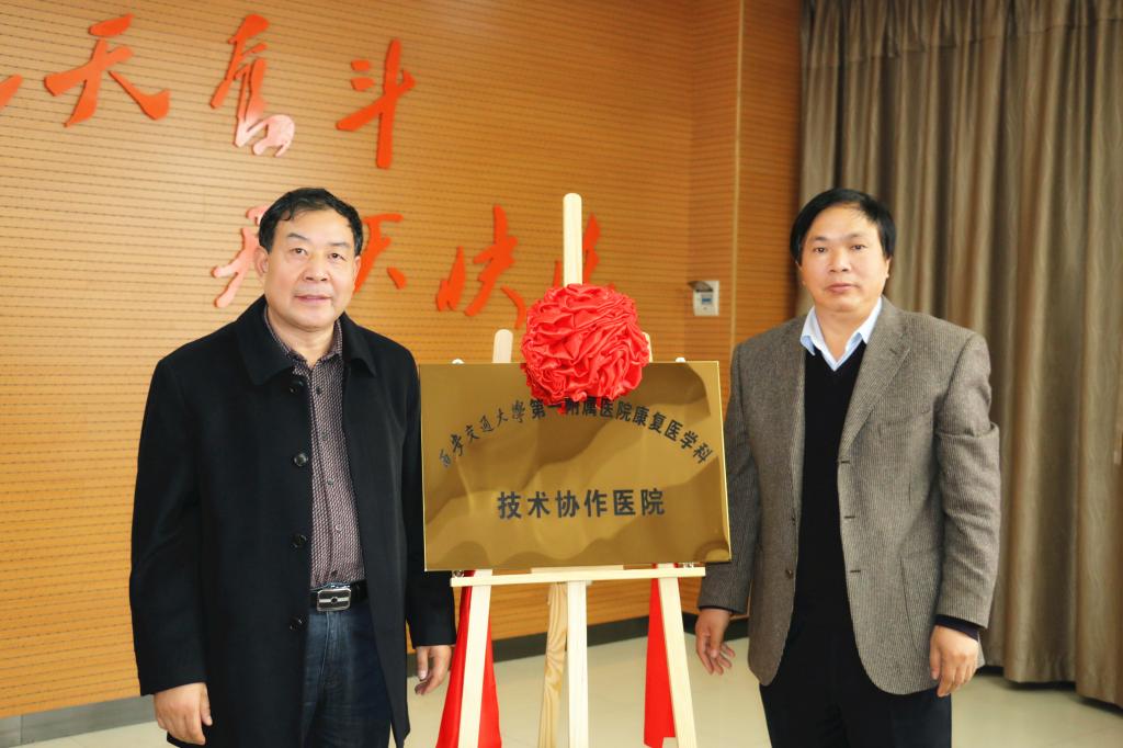 接下来,由副校长李海龙与西安交大一附院王锁良教授、高新区残联理事长赵志安共同为康复医学科揭牌。渭南师院附属医院康复医学科被确立为“西安交通大学第一附属医院康复医学科技术协作医院”,“渭南高新区残疾人康复定点医院”。这也标志着西安交大一附院将在技术和资源上给予附属医院长期的协作支持。