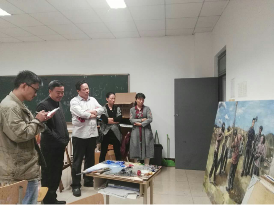 师生们的热情创作得到了学校领导的高度重视和深切关怀,丁德科校长近日深入创作一线慰问绘画教师,丁校长认真观看了教师们的创作作品并进行指导,从绘画主题和表现精神上对绘画创作提出了更高的要求,他还嘱咐教师们既要注重创作工作也要保重身体。(通讯员 韩文娟)