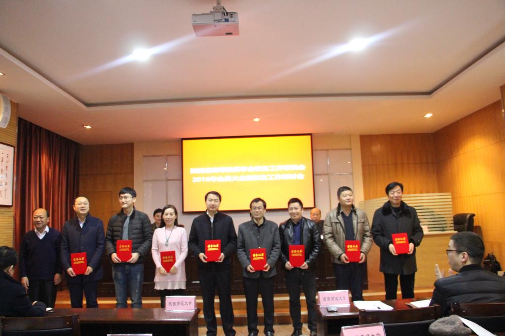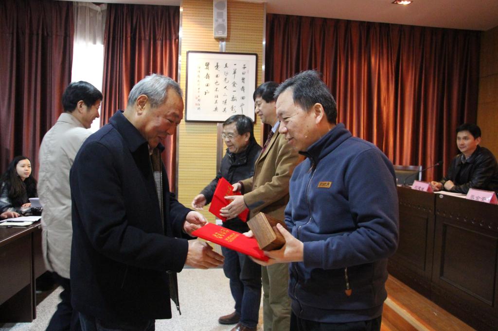 校友工作研究会会长周纲、bat365官网党委书记张金安为获奖代表颁奖