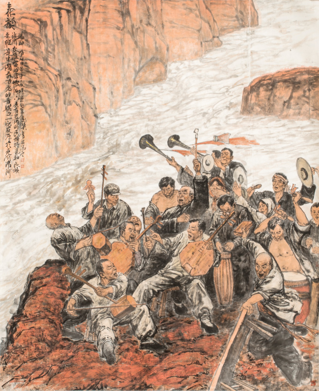 《秦韵》旨在反映陕西关中地区农闲时节农民醉情歌唱的场景,展现人民群众醉情地歌唱的情景,表达丝绸之路起点的人民群众对国家实施“一带一路”战略的欣喜。