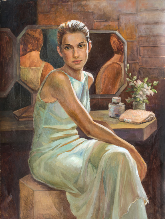《回眸》表现瑰姿艳逸、仪静体闲的俄罗斯少女。丝绸之路促进了欧亚非各国的经济交流与合作,构架起了民心相通之桥,这幅作品描绘仪静体闲的俄罗斯少女,表达人民对美好生活的向往。