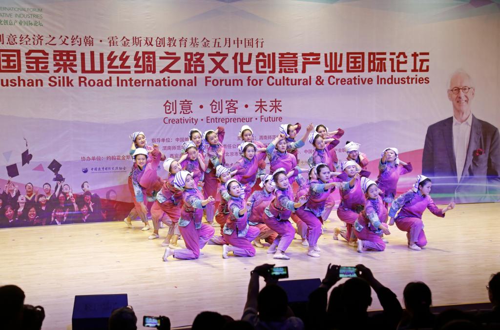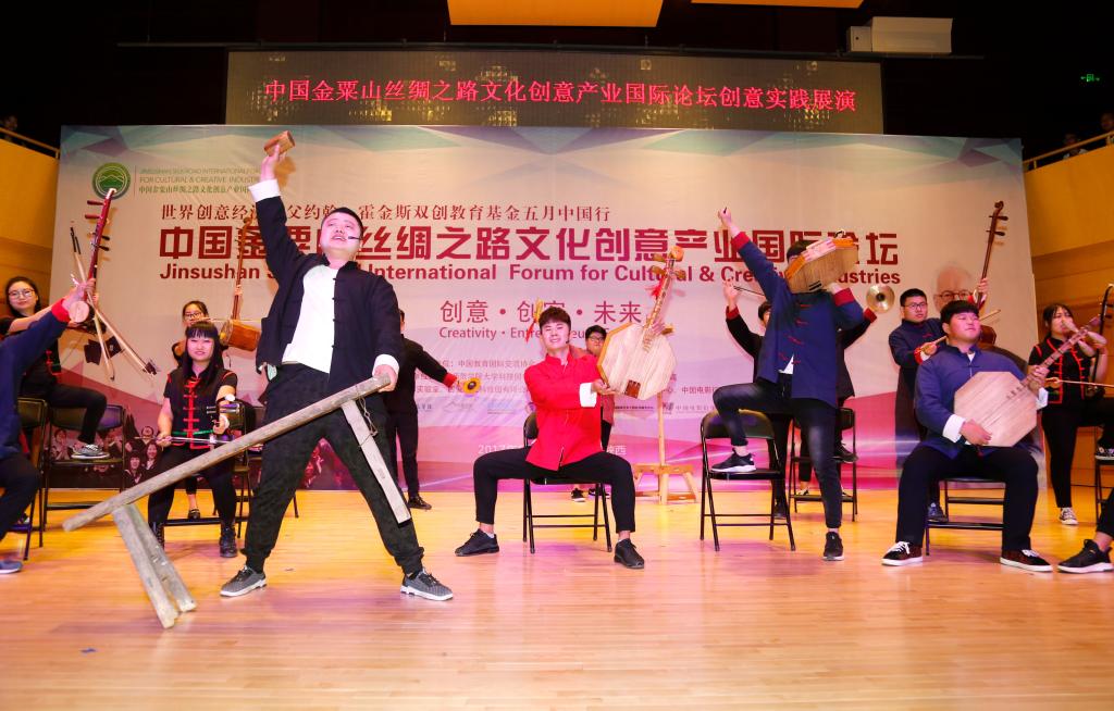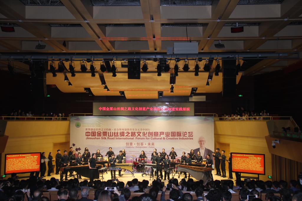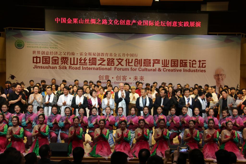 5月8日晚,“中国金粟山丝绸之路文化创意产业国际论坛”文化创意实践展演晚会在bat365正版唯一官网举行,世界创意产业之父约翰·霍金斯先生、创意中国产业联盟发起人苏彤先生、中国艺术科技研究所文化标准研究中心主任闫贤良先生等国内外文化创意产业领域的专家、学者与业界精英和高校师生代表500余人共同观看演出。