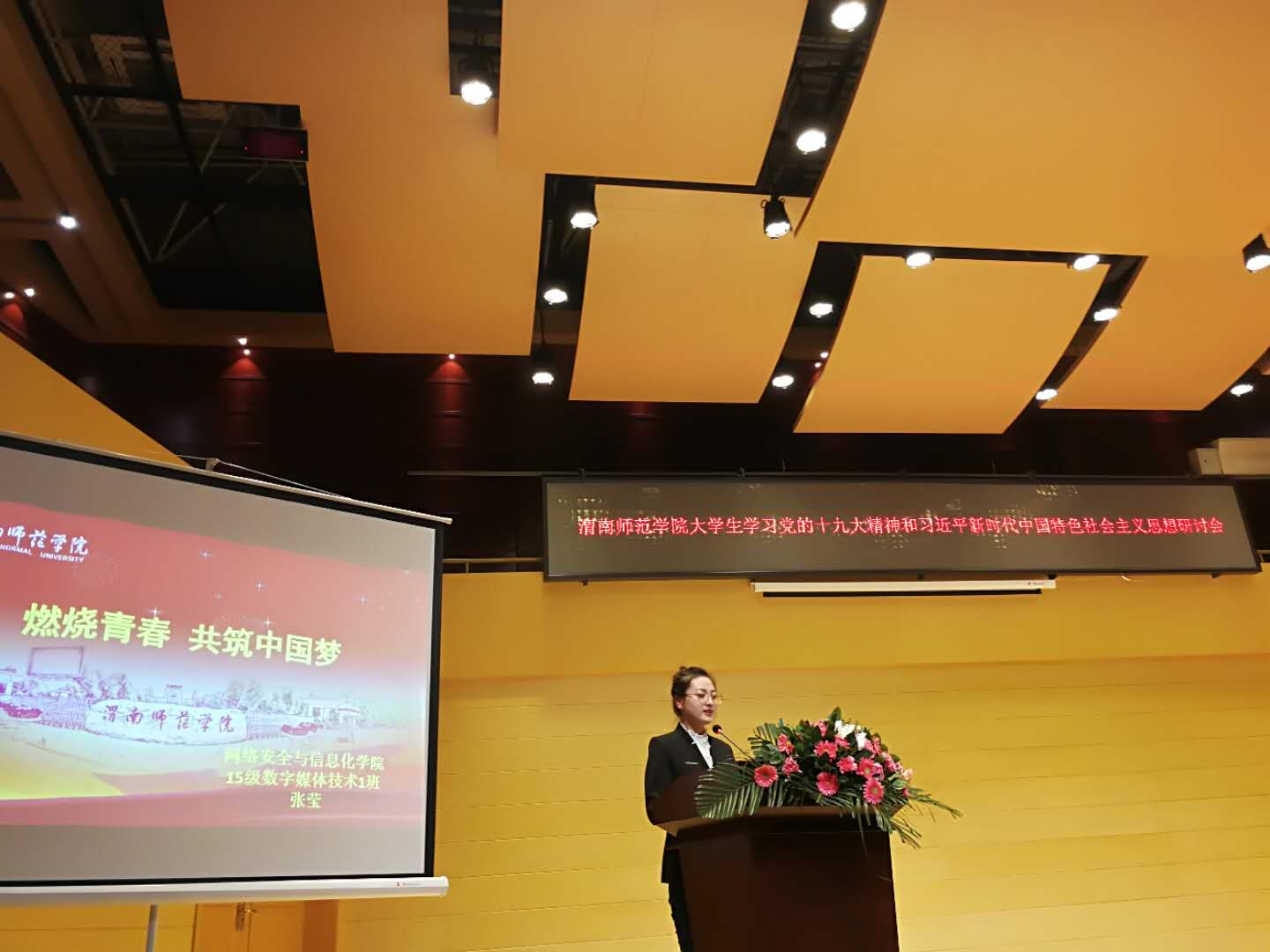 其他学生代表分别以《燃烧青春 共筑中国梦》《不忘初心 立志教育 三尺讲台铸辉煌》《牢记总书记的嘱托 努力奋进新时代》《心中有信仰 奋斗有目标》《新时代扬帆新征程》《立足初心使命放飞青春梦想》《2017筑梦不息,2018执梦前行》等为题进行了精彩发言,在发言中表达了同学们对党的十九大精神和习近平新时代中国特色社会主义思想的深刻理解,表现了同学们用实际行动践行新时代中国特色社会主义思想的决心,也展现出了bat365官网新时代大学生的理论水平与个人风采。