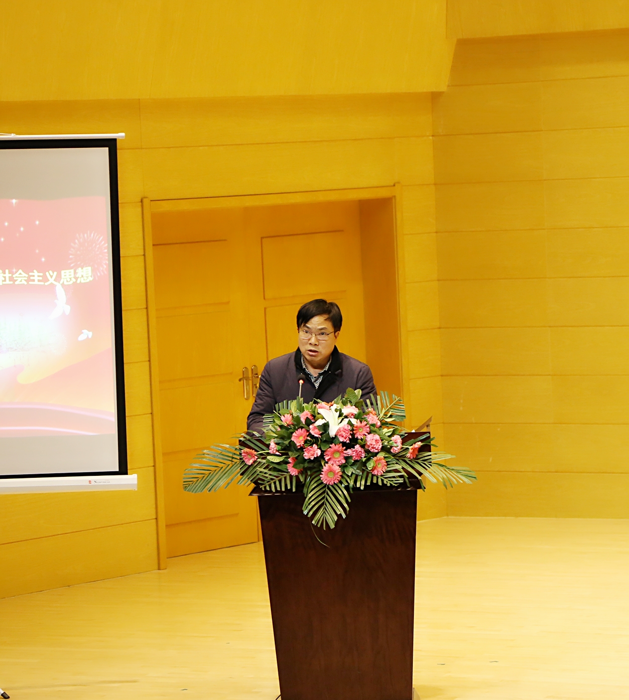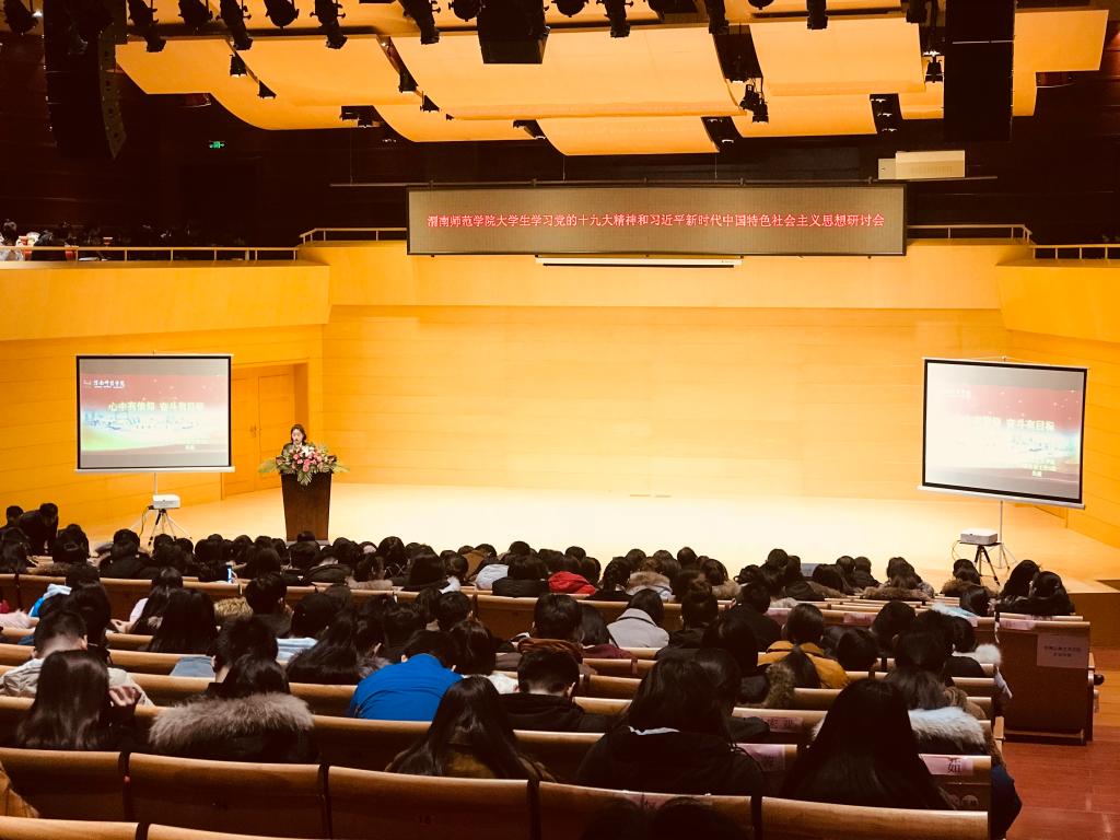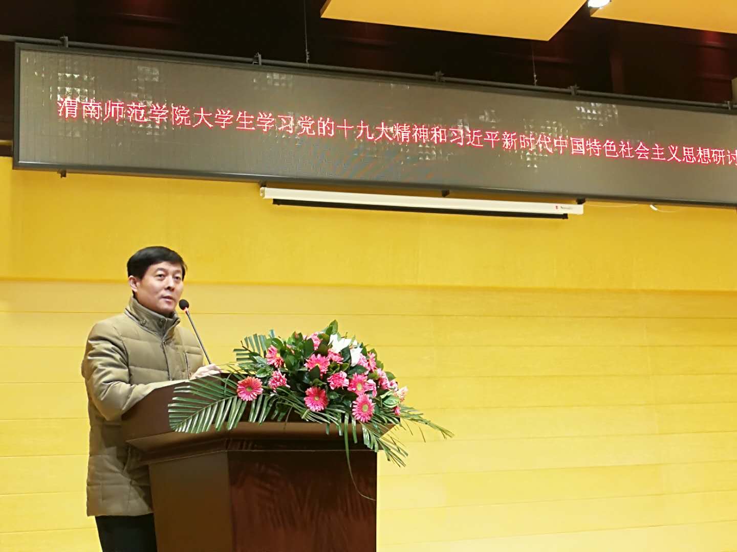 2018年1月3日下午,bat365官网“大学生学习党的十九大精神和习近平新时代中国特色社会主义思想研讨会”在华金音乐厅隆重召开。学校党委书记丁德科、党委副书记任健、党委委员、副院长李海龙出席会议,学校宣传部、学工部、人武部、团委等部门负责人,各二级学院分党委、党总支书记、副书记、学工办主任、学生党支部书记、专兼职辅导员,以及学生干部、学生党员、入党积极分子代表共500余人参加大会。会议由学工部部长王俊安主持。