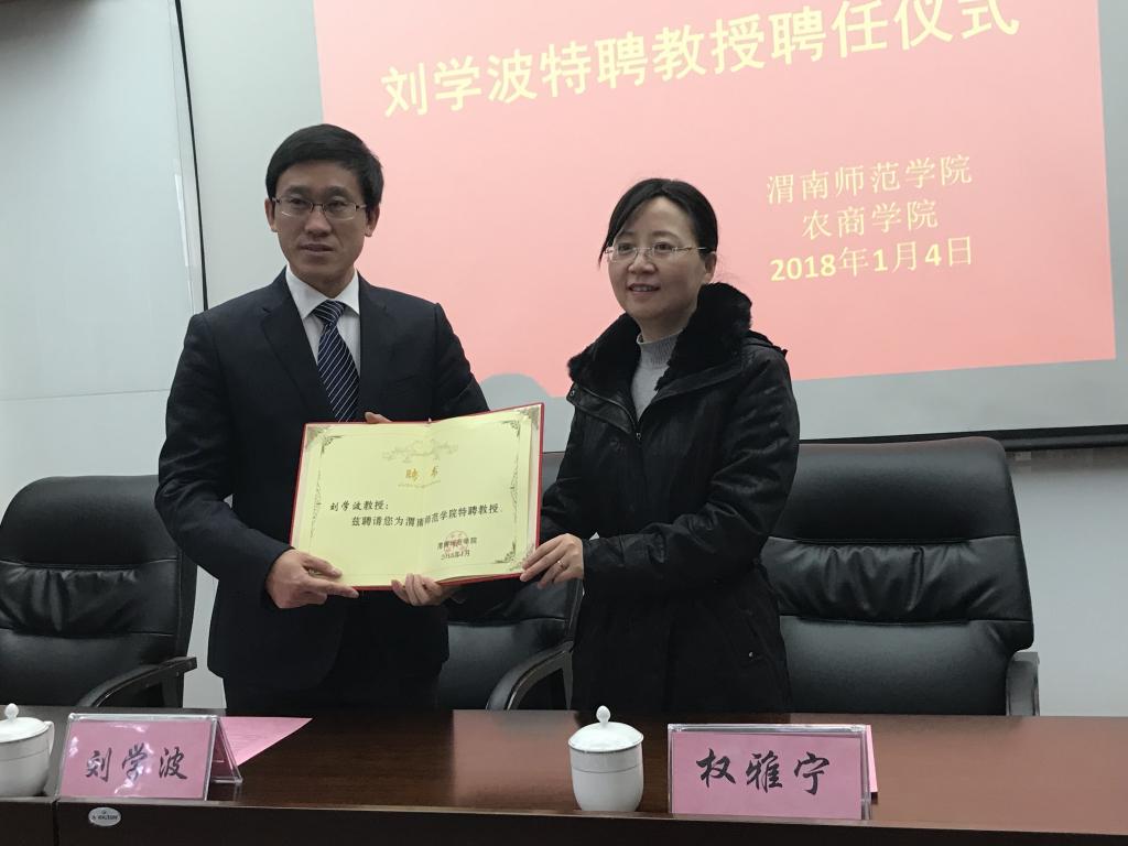 刘学波特聘教授是农商学院柔性引进的第一位高层次人才,也是bat365官网2018年柔性引进第一位高层次人才。(通讯员 张晶)