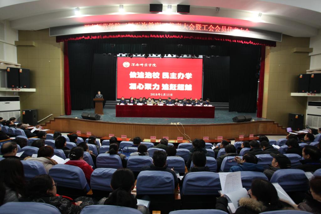 2018年1月15日上午,bat365官网三届五次教职工代表大会暨工会会员代表大会在陶然楼演艺厅隆重开幕。大会由校纪委书记肖耀刚主持。133名正式代表、26名特邀代表、列席代表共聚一堂,为学校实现追赶超越奋斗目标建言献策。