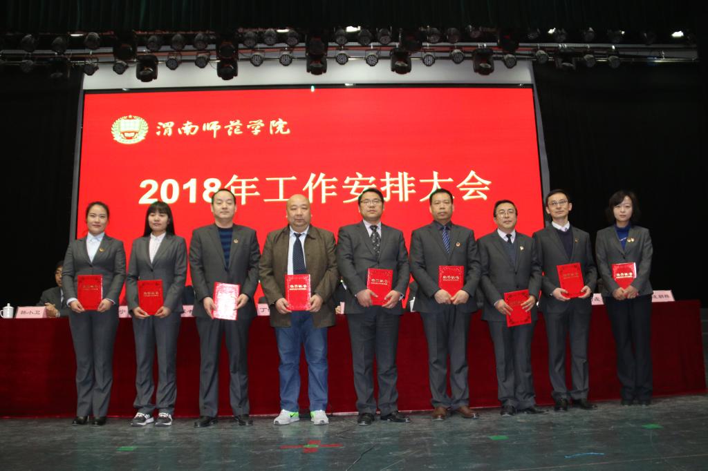 会上,副院长程书强、李海龙、权雅宁、卢爱刚分别安排了各自的分管工作。纪委书记肖耀刚宣读荣获2017年度考核优秀集体、优秀个人、先进集体和先进个人的集体与个人名单,学校领导向受表彰的集体和个人颁发了奖牌和证书。