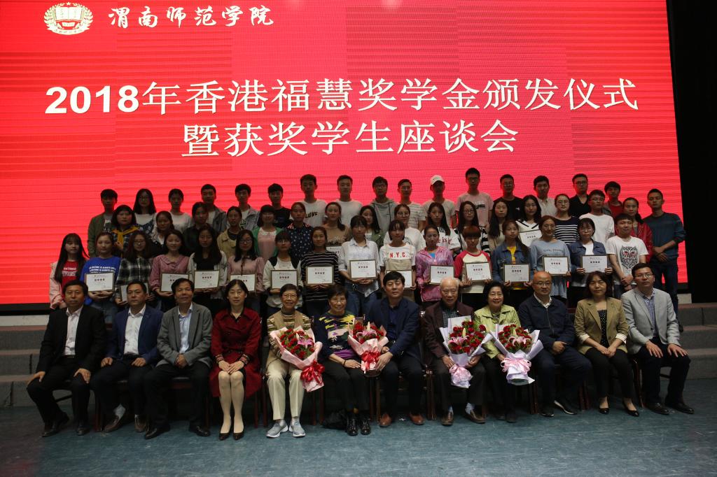 4月20日上午,2018年香港福慧慈善基金会奖学金颁发仪式暨获奖学生座谈会在bat365官网演艺厅举行。福慧慈善基金会主席严崔常敏,基金会董事宋伟文、宋何燕敏、杜佩玲,陕西省委统战部三处处长张丰,三处主任科员张琦,渭南市台办主任许芬芳等一行三人,bat365官网党委副书记任健,党委委员王菊霞,学工部部长王俊安,副部长崔启、姚明亮出席颁发仪式。各二级学院副书记、学工办主任、负责资助工作的辅导员和学生代表等300余人参加了颁奖仪式。仪式由王俊安主持。
