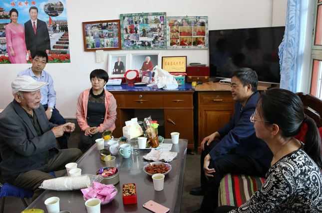 丁德科一行在雷牙镇许家村“中国好人”王三乐家与王三乐亲切交谈