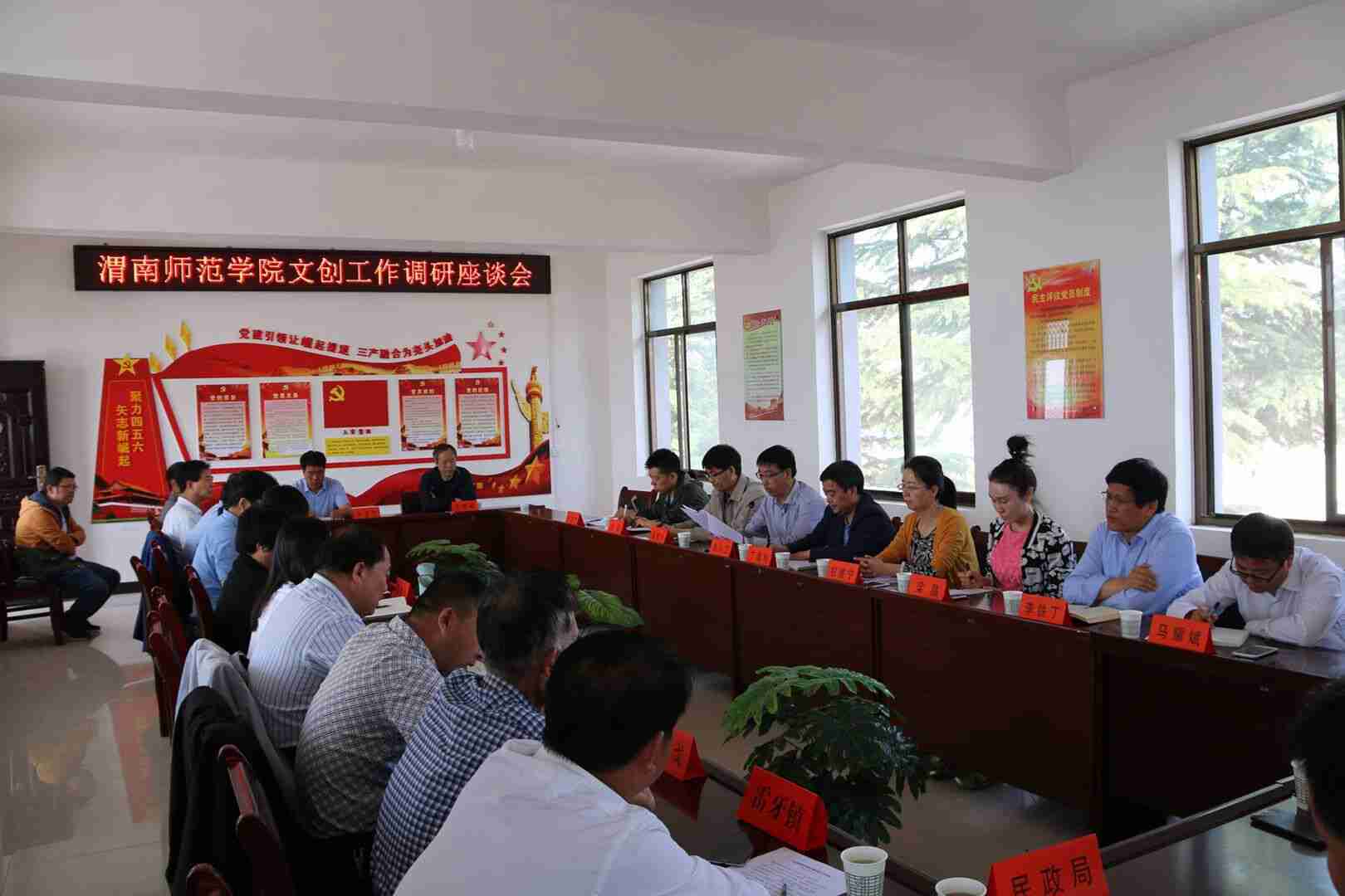 为加快推动文创帮扶工作,校地双方在尧头村村委会召开结对帮扶联席工作会议。会上,与会领导与当地文化乡贤围绕“文创白水”建设各抒己见,深入研讨,就尧头村村史挖掘整理、大学生写生基地“初祖书院”建设和白水历史文化实景剧“初祖”编创工作等建言献策,校地双方就尧头村文创基地建设项目达成共识,并就项目启动工作进行了对接和商讨。