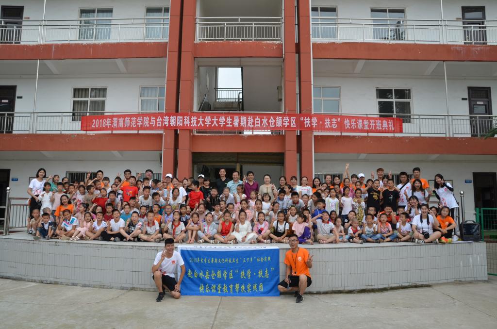 相比于去年,2018年海峡两岸两校共同组建支教团队助力脱贫攻坚,这支团队更加庞大,支教和社会调研总人数27人,bat365正版唯一官网16人、台湾朝阳科技大学11人,报名参加“扶学·扶志”快乐课堂的白水仓颉学区的小学生达140人,其中建档立卡48人,占建档立卡学生的73.8%。