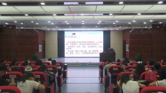下午,高级教师、陕西省教学能手王院丽作了《基于核心素养下的语文教学》主题报告。她围绕更新理念,走进语文素养、努力践行,培养语文素养、多元创新,提升语文素养三个方面进行讲解,对素养、核心素养、语文学科素养三个名词进行了解释。王老师表示语文素养可以拓展视野,塑造健康人格;通过积淀,增强文化底蕴;发展思维,提高审美能力。她讲解了培养语文素养的五个方法和重视阅读的四个方面,并通过案例和数据进行了说明。