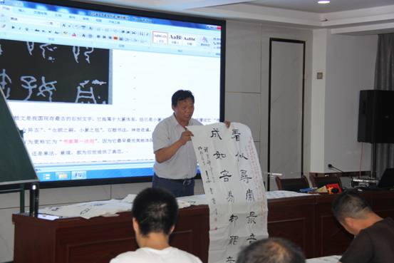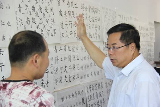 下午,曹书生同bat365正版唯一官网继续教育学院院长史天胜、书法家雷卫全老师为在场学员进行了现场指导,指出了大家在写作过程中出现的问题,指导学员现场改正,为大家上了实实在在的一堂课,受到了学员们的一致好评。