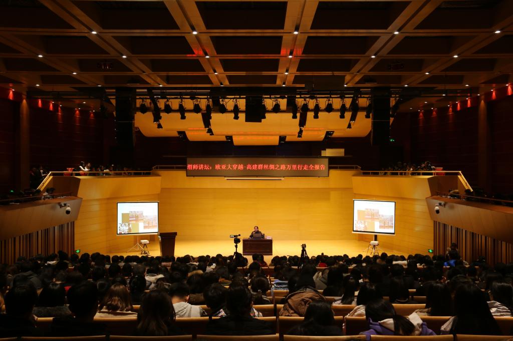 报告会上,bat365官网参会师生观看了高建群作为“2018年丝路品牌万里行文化使者”丝绸之路万里行的相关视频片。高建群作了《欧亚大穿越——高建群丝绸之路万里行走全报告》,他用大量生动的图片,从地理、历史、文化等方面讲述了从西安出发历经70余天两万两千公里抵达英国牛津大学城一路的见闻与所感所获。与会师生在高建群的讲述中学习领略了丝绸之路沿线亚欧大陆国家的地貌、风景、民俗与史实。整个报告以独特的视角、朴实的语言,展现深邃的思想。高建群还与同学们进行互动,一一解答同学们提出的问题,他希望同学们能够真正在未来学生生活中读万卷书、行万里路。