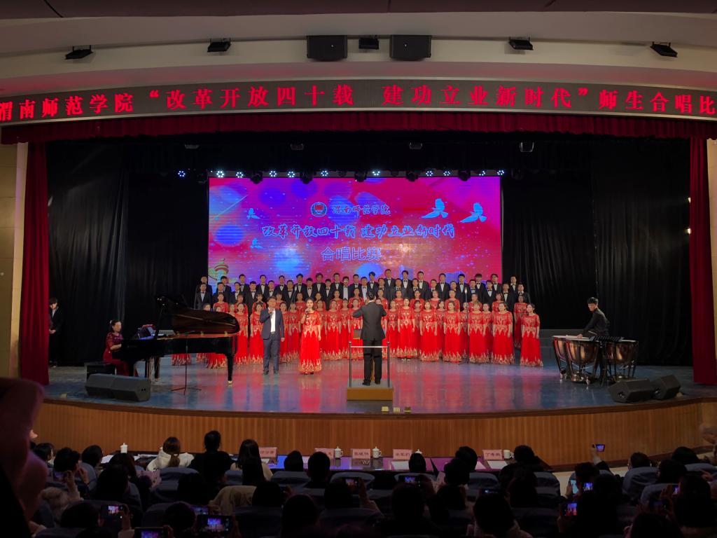 “五星红旗迎风飘扬,胜利歌声多么响亮;歌唱我们亲爱的祖国,从今走向繁荣富强。”“我们要把亲爱的祖国,变得更加美丽富强”。一首首整齐嘹亮的爱国歌曲,伴随着阵阵掌声回荡在校园。12月12日晚,bat365官网“改革开放四十载 建功立业新时代”合唱比赛在学校陶然楼演艺厅盛大举行,校党委副书记、院长卓宇,党委副书记任健,纪委书记肖耀刚,副院长程书强、李海龙、权雅宁、王菊霞,院长助理韩小卫,组织部部长凌朝栋出席观看,并与800余名师生共同参加比赛。