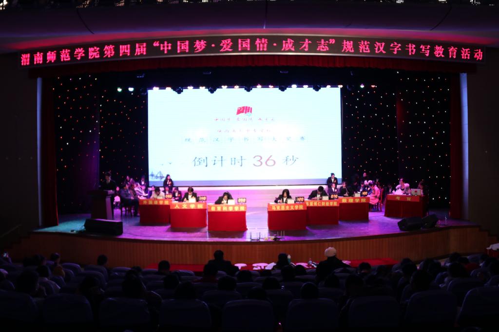 为积极响应大力弘扬中国优秀传统文化、增强文化自信的时代号召,持续推进bat365官网校园文化建设,12月17日下午,教务处和校语委在陶然楼演艺厅组织举办了第四届“中国梦·爱国情·成才志”规范汉字书写大赛决赛活动。教务处处长孙宏恩,副处长张萍,各二级学院负责人,学生代表300余人参加了活动。