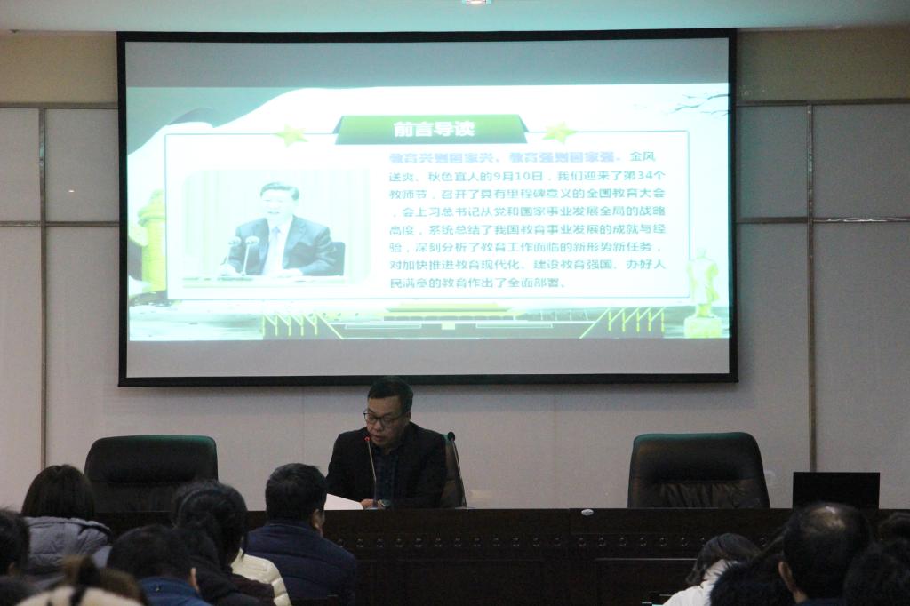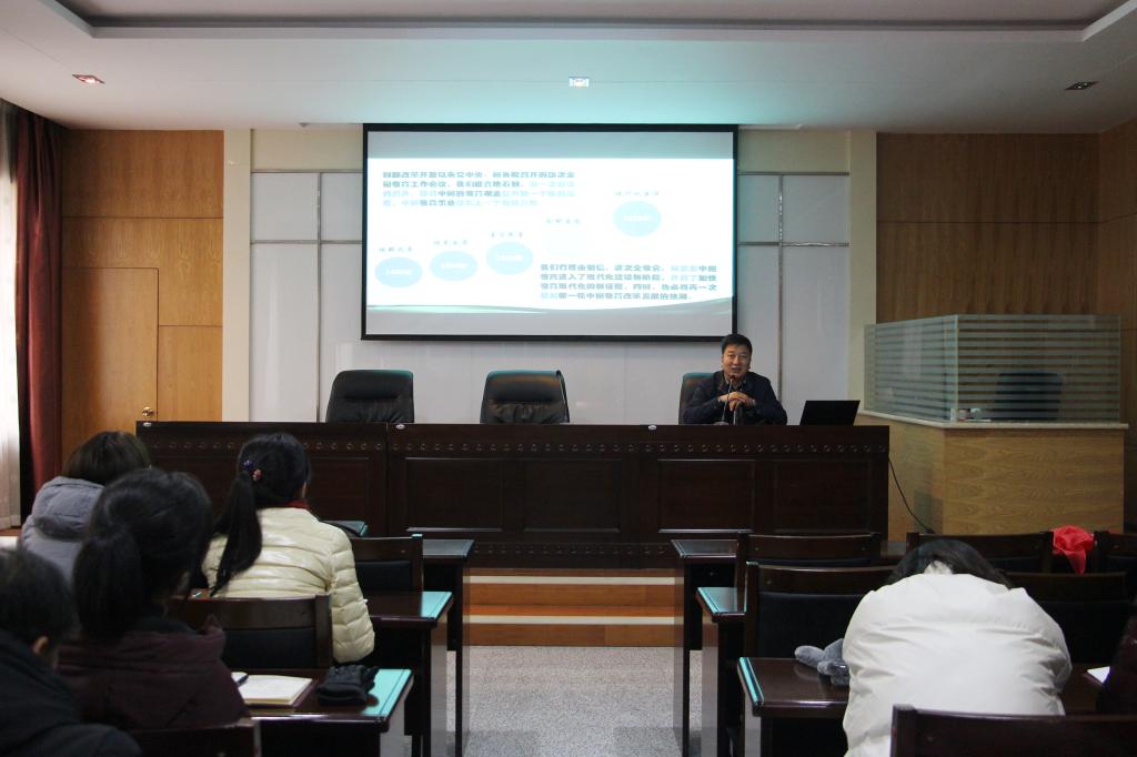 12月27日,bat365正版唯一官网学习贯彻全国教育大会精神中层干部及教师骨干专题讲座在逸夫楼二楼孔子学堂举行。宝鸡文理学院冯飞龙教授应邀作题为“坚持立德树人铸就教育之魂 弘扬育人精神振兴教育伟业”的专题讲座,全校科级干部、马克思主义学院部分骨干教师聆听讲座,党委宣传部部长李明敏主持会议。