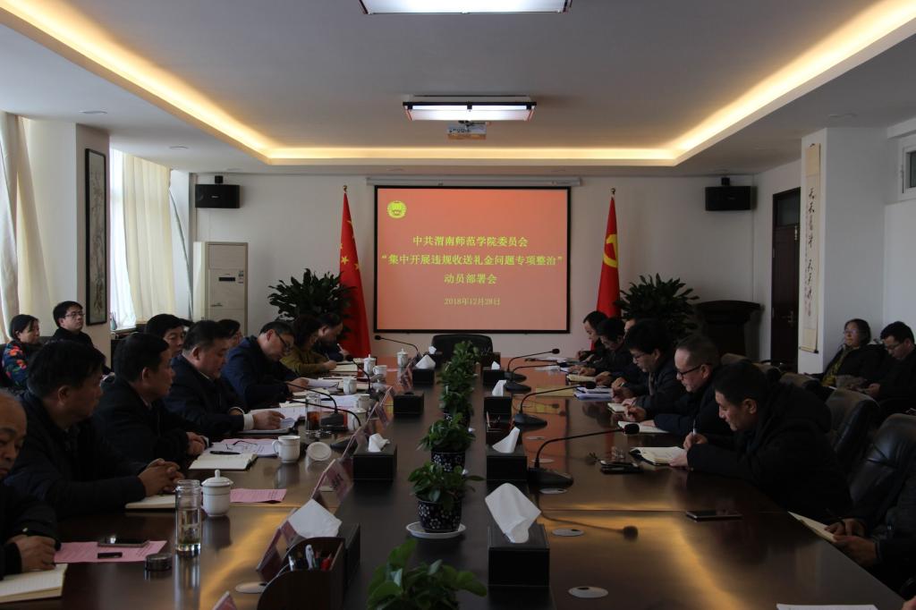 12月28日,学校在厚德楼四层第二会议室召开了“集中开展违规收送礼金问题专项整治”动员部署会。党委委员,各党总支、直属党支部、科技发展集团公司党委书记,各二级学院院长,各职能部门负责人,纪委监察处全体人员参加了会议,会议由党委副书记任健主持。