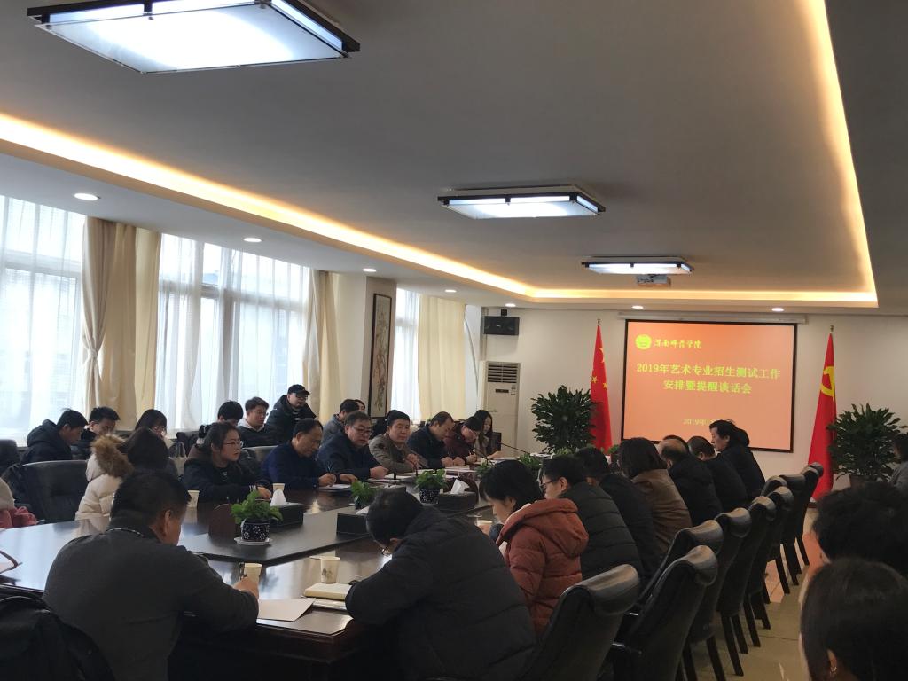 会上,教务处副处长张萍对2019年艺术专业招生测试工作进行了安排,对教务处带队人员、测试组组长、考官的职责作了说明。