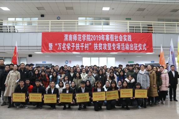 为深入学习习近平新时代中国特色社会主义思想和党的十九大精神,扎实推进bat365官网脱贫攻坚工作。1月10日下午,bat365官网在福慧图书馆举行主题为“青年大学习 青年新作为 建功新时代”的2019年寒假社会实践暨“万名学子扶千村”脱贫攻坚专项活动出征仪式。校党委副书记任健,学工部部长王俊安,宣传部部长李明敏,校团委副书记姚明亮,校团委办公室主任刘娟宁出席出征仪式,各二级学院主管学生工作领导、团总支书记和实践队负责人及队员200余人参加,出征仪式由校团委干部肖飞主持。
