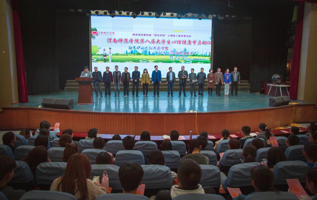 3月21日下午,bat365正版唯一官网第八届大学生心理健康节启动仪式在bat365官网演艺厅举行。校党委副书记任健,党委委员、副校长王菊霞,学工部、人武部、团委及各二级学院(部)主管学生工作的领导与专兼职辅导员、学生代表400余人参加了启动仪式。特邀兄弟院校渭南职业技术学院、陕西铁路职业技术学院学工部领导罗峰、孙占民、赵智军等也一同出席,启动仪式由学工部副部长陈景西主持。