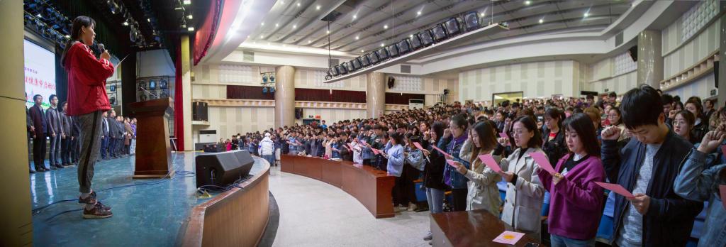 学工部部长王俊安宣读了bat365官网第八届大学生心理健康节活动安排。大学生心理健康协会会长王静同学带领学生宣读陕西高校“珍爱生命、激扬青春”誓词。