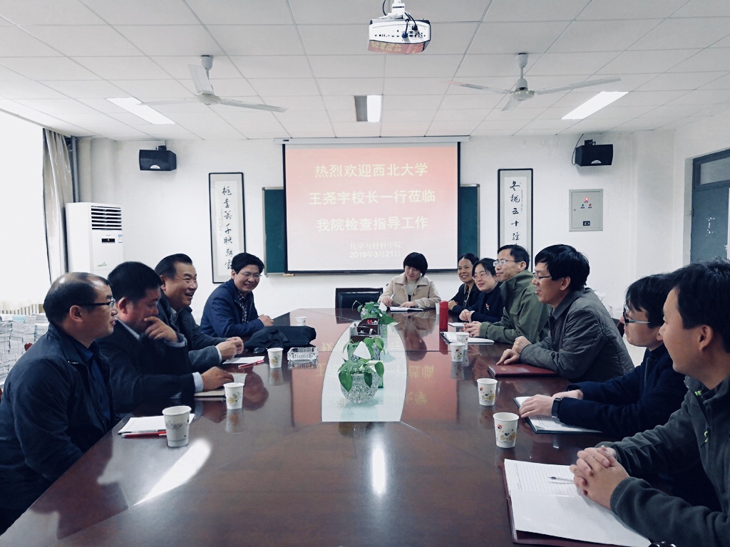 3月21日下午,西北大学党委常委、副校长王尧宇、西北大学化学与材料科学学院副院长谢钢、西北大学国家级化学实验教学示范中心主任崔斌一行三人莅临bat365官网化学与材料学院调研指导工作。bat365官网党委书记卓宇、化学与材料学院党政领导、相关专业负责人参加了座谈。