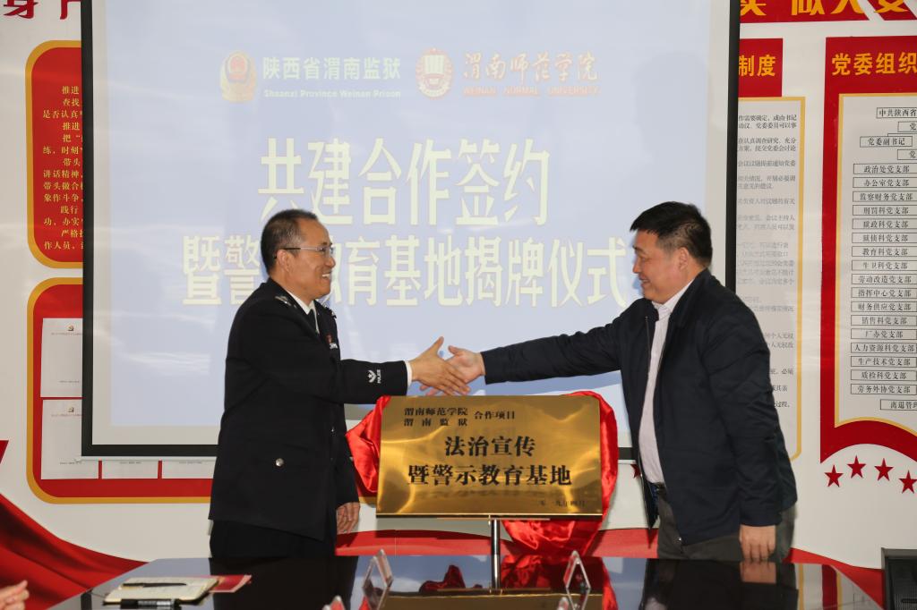 bat365正版唯一官网党委书记卓宇与渭南监狱党委书记、监狱长刘玉武为“法治教育暨警示教育基地”揭牌。