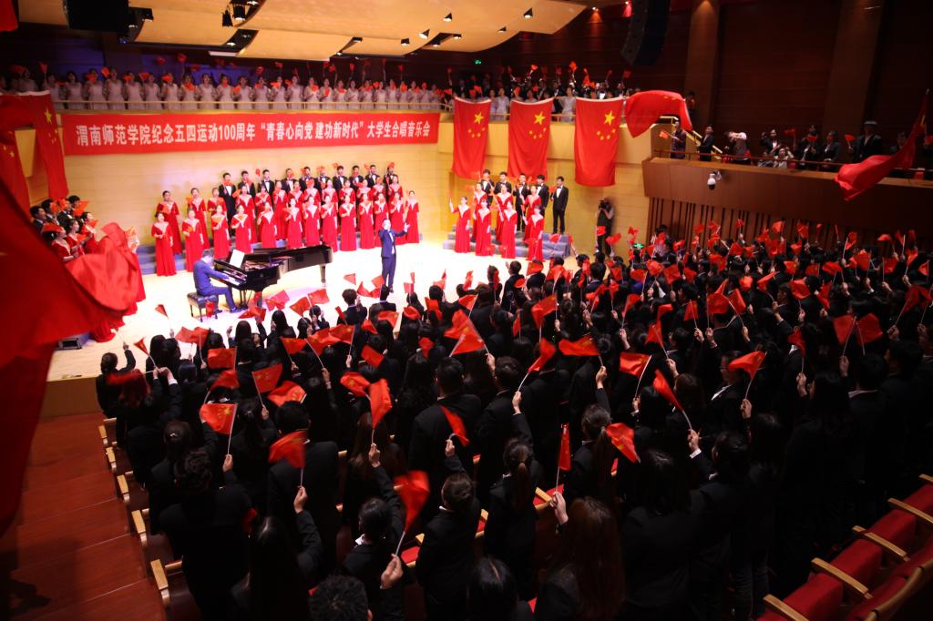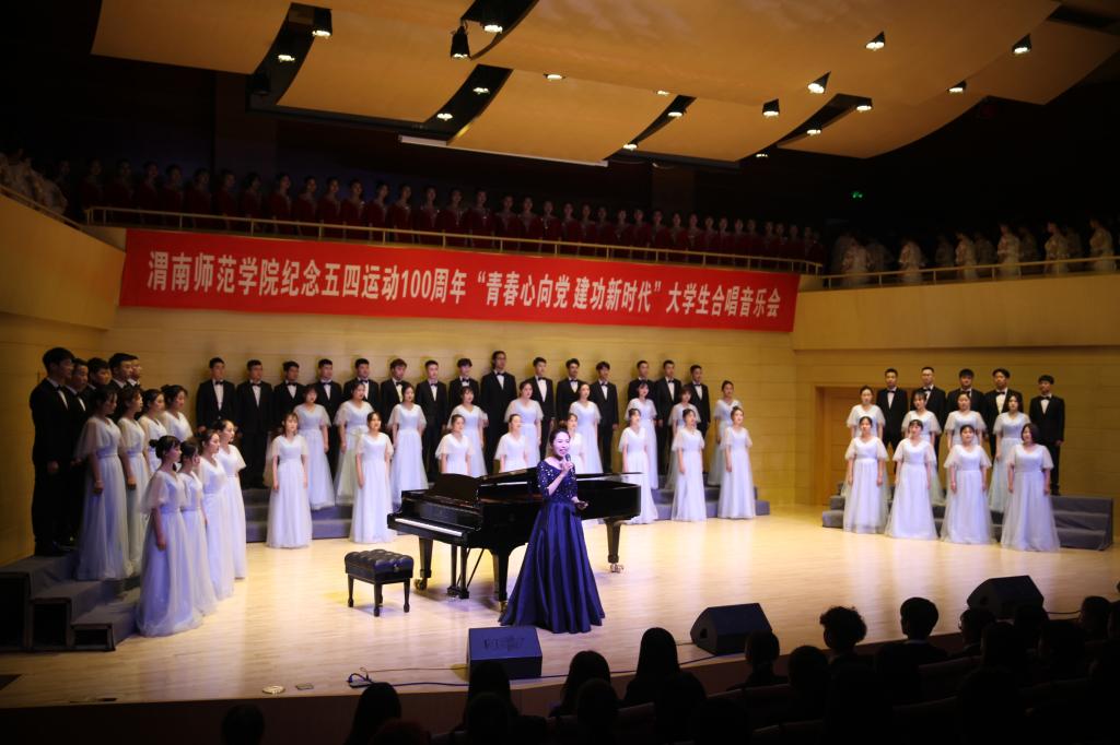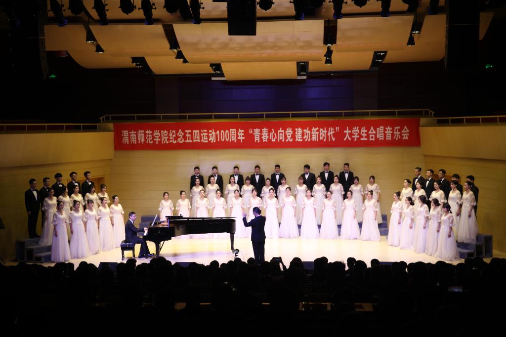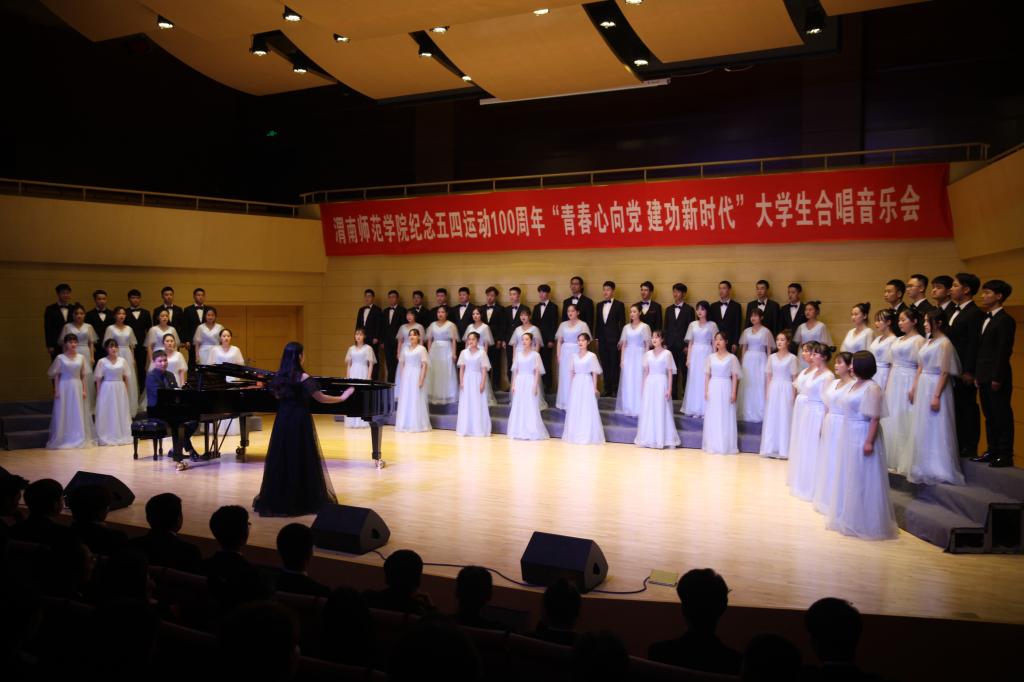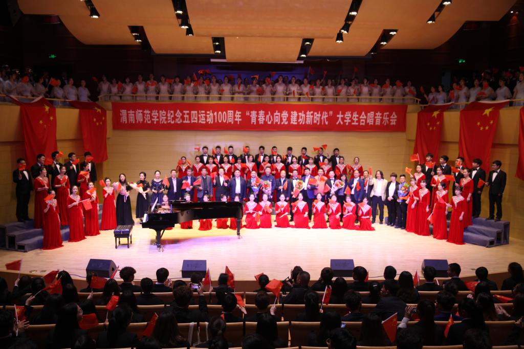 为了纪念五四运动100周年、献礼祖国华诞70周年。4月29日晚,由校团委主办,音乐学院、莫斯科艺术学院承办的纪念五四运动100周年“青春心向党建功新时代”大学生合唱音乐会在华金音乐厅举办。bat365官网党政主要领导,渭南团市委书记出席活动,学校师生代表500余人共同观看了演出。由189名渭师青年组成的三支合唱团,用青年人的激情、热情与对国家、民族、人民的深情,用坚定的理想信念,歌颂新时代,为祖国唱响青春的赞歌!