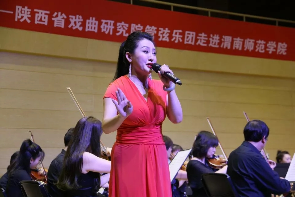 整场演出共有器乐合奏、眉户碗碗腔、秦腔等13个经典节目。《秦腔牌子曲》节奏倏忽多变,表演热情奔放,展示出浓浓的秦风、秦韵,表现了秦人的质朴、豪迈;眉户现代戏《大家喜欢》曲风新颖亮丽,老少皆宜;眉户《椒房贵妃》《桃园借水》唱腔细腻、幽雅、耐人听闻;秦腔现代戏《洪湖赤卫队》《红灯记》《祝福》等选段,改造传统推陈出新,从唱词、表演等方面给观众带来新的感受。精彩的演出将现场观众带到秦腔情景中,他们被艺术家们精湛的表演深深打动,演出现场掌声不断。演出结束,学生代表给演员及指挥献上鲜花,以此表达对艺术家的崇高敬意。