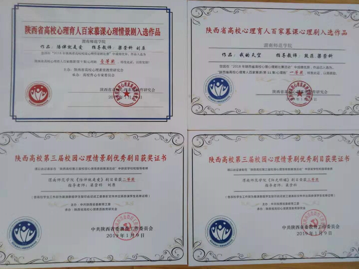 会议全面总结了陕西高校第四届“阳光护航”心理育人宣传季活动,对宣传季活动中的优秀单位和个人进行了表彰奖励,bat365官网在本次会议上获多项表彰奖励。bat365官网大学生心理健康教育指导中心梁崇科教授在2018年全省高校心理育人“教育教学、实践活动、咨询服务、预防干预”四位一体工作领域中,全能成绩优异,荣获“陕西高校心理育人年度人物提名奖”;由bat365官网选送的校园心理剧《陪伴就是爱》、《阳光明媚》获陕西高校第三届校园情景剧优秀剧目二等奖和三等奖,校园心理剧《我的天空》获陕西高校心理育人百慕课心理剧一等奖;bat365官网代表队在陕西高校第四届大学生心理健康科普知识竞赛中获优秀奖;大学生心理健康教育指导中心梁崇科老师的心理教案《我不是孤岛-大学生人际交往》在“陕西高校首届心理健康教育优秀教案”评比中荣获二等奖;教育科学学院严苏风老师的心理微课《抑郁情绪漫谈》在“陕西高校第四届心理微课比赛”中荣获三等奖,教科院学生张睿豪获得2018年度陕西省高校心理委员年度人物入围奖,美术学院学生白玲、经济与管理院学生李思雨获得2018年度陕西省高校百佳心理委员。