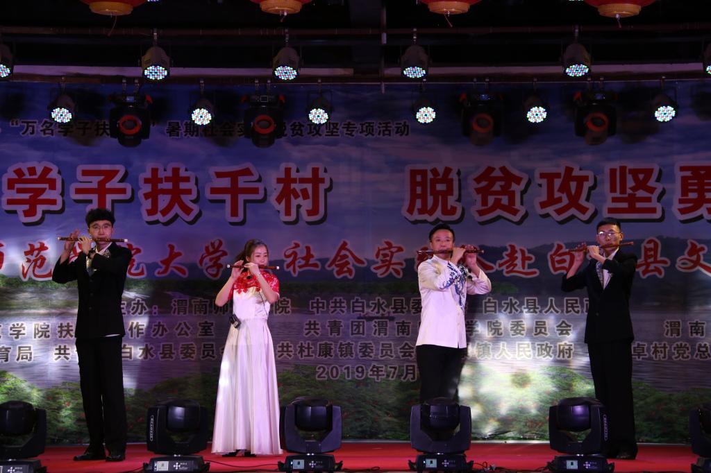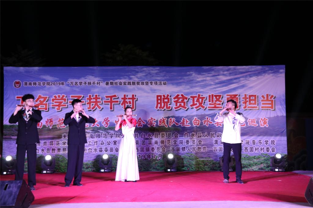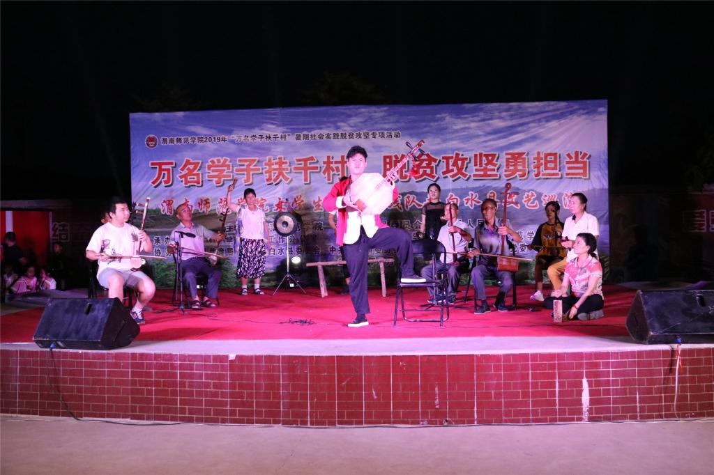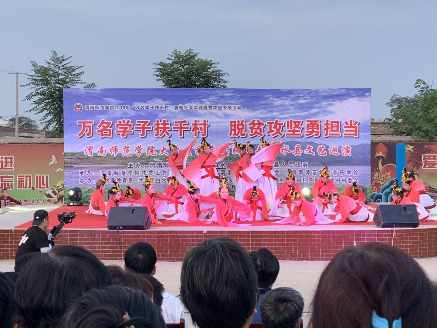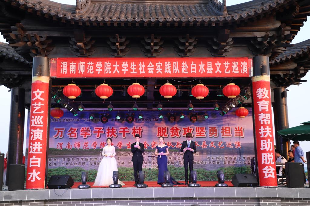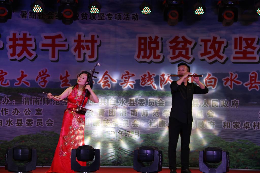 脱贫攻坚传真情,勤劳致富奔小康。7月12日晚和13日晚,“万名学子扶千村脱贫攻坚勇担当”bat365正版唯一官网大学生社会实践队赴白水县文艺巡演分别在西固镇西固村和杜康镇和家卓村上演。bat365正版唯一官网赴白水县西固村文化艺术三下乡演出团和赴白水县和家卓村文化艺术三下乡演出团师生们为当地群众奉献了一场丰盛的文化大餐,为两地父老乡亲在脱贫致富奔小康的道路上鼓劲、加油!